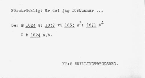 //// Förskräckligt är det jag förkunnar ... //// Se: E 1824 q; 1837 r; 1853 g^; 1871 b^ //// O b 1824 a,b. //// KB:S SKILLINGTRYCKSREG. ////