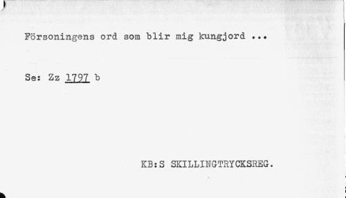 //// Försoningens ord som blir mig kungjord ... //// Se: Zz 1797 b //// KB:S SKILLINGTRYCKSREG. //// ! ////
