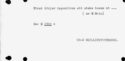 //// Först börjar ingeniören att staka banan ut ... //// ( av W.Wotz) //// Se: E 1902 o //// I //// [ //// ! //// KB:S SKILLINGTRYCKSREG. ////
