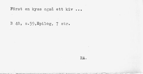 //// Först en kyss også ett kiv ... //// B 48, s.59,Epilog, 7 str. //// RA, ////