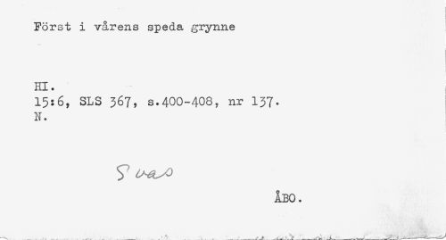 //// Först i vårens speda grynne //// Hl. //// 15:6, SLS 367, s.400-408, nr 137. //// N. //// ÅBO. //// . - -____. . .' . ..... - _^ . .A; ot-Jk^-____-*--__---.. -* ...... ' * ////