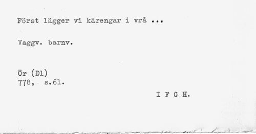 //// Först lägger vi kärengar i vrå ... //// Vaggv. barnv. //// Ör (Dl) //// 778, s.6l. //// I F G H. ////