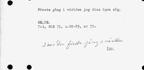 //// Första, gång i världen jag dina ögon såg, //// EE,PE. //// 7:4, SLS 35, s.88-89, nr 79. //// ^ ÅBO. ////