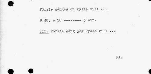 //// [ - Förste gången du kysse vill ... //// * //// B 48, s.58-----3 str. //// Jfr. Första gång jag kyssa vill ... //// g* //// RA. ////