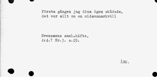//// I Första gången jag dina ögon skådade, //// I det var allt om en midsommarkväll //// Svenssons saml.häfte, //// 4:4^? Nr.3. s.29. //// ÅBO. ////