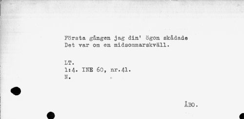 //// * //// , //// Första gången jag din' ögon skådade //// Det var om en midsommarskväll. //// LT. //// j 1:4. INE 60, nr.41. //// ÅBO. ////