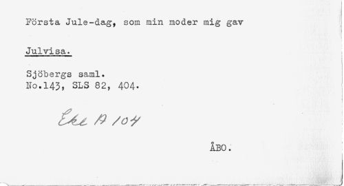 //// Första Jule-dag, som min moder mig gav //// - - .' ; //// Julvisa. //// ! //// Sjöbergs saml* //// No.143, SLS 82, 404. //// * //// ! //// ÅBO. //// < //// J ////