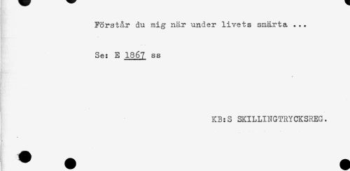 //// Förstår du mig när under livets smärta ... //// Se: E 1867 ss //// - //// KB:S SKILLINGTRYCKSREG. ////