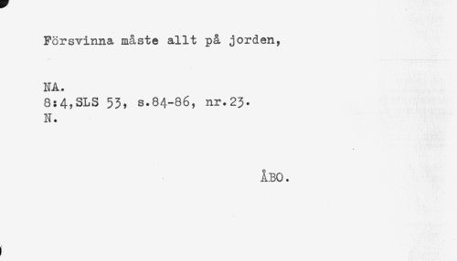 //// Försvinna, måste allt på jorden, //// NA. //// 8:4,SLS 53, s.84-86, nr.23. //// N. //// ÅBO. ////