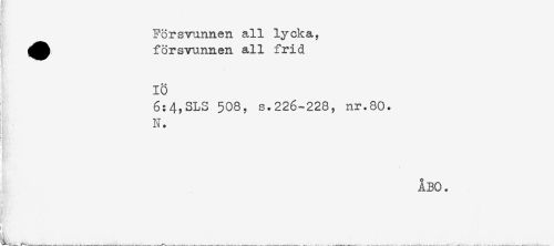 //// Försvunnen all lycka, //// (åh försvunnen all frid //// * * //// 10 //// 6:4,SLS 508, s.226-228, nr.80. //// N. //// ) //// ÅBO. //// ' - ' //// __ _.. . ////