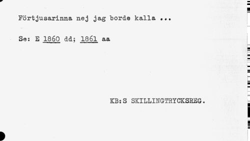 //// Förtjusarinna nej jag borde kalla ... //// i //// Se: E 1860 dd; 1861 aa //// S //// k- //// KB:S SKILLINGTRYCKSREG. = //// ] //// * ! ////