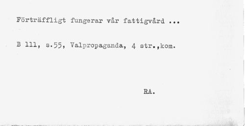 //// Förträffligt fungerar vår fattigvård ... //// < //// B 111? s*55, Talpropaganda? 4 str.?kom. //// RA. ////
