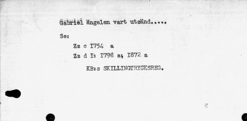 //// ^åbriei ängelen vart utsänd..... //// r. . . - //// Se: //// Zz c 1754 a //// ... * //// Zz d 1: 1798 as 1872 a //// - * fr"* " * . , - . //// KB:s SKILLINGTRYCKSREG. //// j* * * . * //// * ////