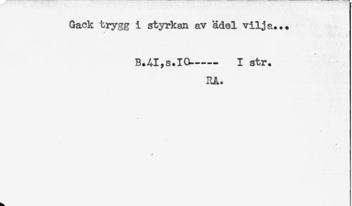 //// Gäck trygg i styrkan av ädel vilja... //// . //// B.4IyS.lO-- I str. //// RÅ. //// * ////