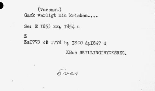 //// (varsamt) //// Gäck varligt min kris&en.... //// Se: E 1853 xx; I85A u //// Z //// ZzI773 c^ 1778 b; 1800 d;l847 d //// KB:s SKILLINGTRYCKSREG. //// \ ////