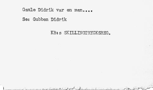 //// Gamle Didrik var en man.... //// Se: Gubben Didrik //// KB:s SKILLINGTRYCKSREG. //// * ////