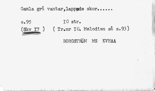 //// Gamla grå vantar,lappade skor...... ! //// s.95 10 str. i //// (Skv 17 ) ( Tr.nr 10. Melodien så s.93) } //// BORGSTmM MS KVHAA //// i //// f //// < //// i //// i //// j //// v ' //// !___....._____----J----lA- - ......---- - - ----...---* ////