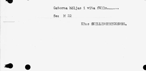 //// Gatorna höljas i vita fälln...... //// Se: M 22 //// < //// ^ KB:s SKILLINGTRYCKSREG. //// . ////