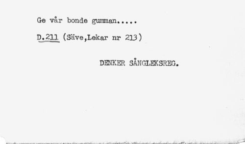 //// Ge vår bonde gumman..... //// D.211 (Säve,Lekar nr 213) //// DENKER SÅNGLEKSREG. ////
