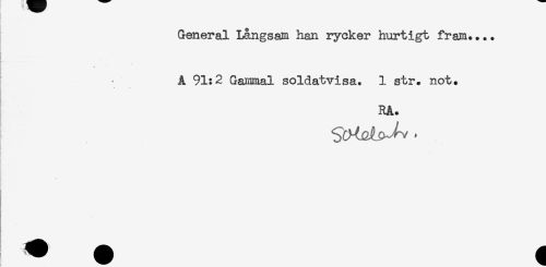 //// General Långsam han rycker hurtigt fram.... //// ..... //// A 91:2 Gammal soldatvisa. 1 str. not. //// RA. //// t ////