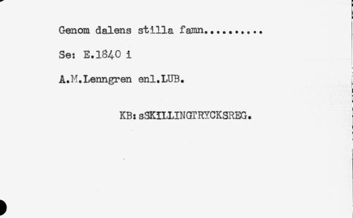 //// Genom dalens stilla famn..... //// Se: E.1%0 i //// A.M.Lenngren enl.LUB. [ //// KB: sSKILUNGTRYCKSREG. //// ! //// t ////