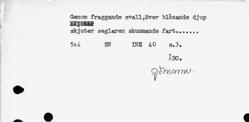 //// ! //// ^ r - ** //// Genom fraggande svall,över blånande djup //// skjuter seglaren skummande fart....... //// 5:A SN INE AO s.3. //// ÅBO. //// E //// t ////