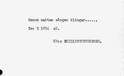 //// Genom natten sången klingar...... //// Se: E 1854 s3. //// KB:s SKILLINGTRYCKSREG. //// t //// t ////