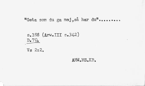//// "Geta som du ga mej,så har du".... //// s.188 (Arw.111 s.342) //// D.70^ //// 7s 2:2. //// ARW.MS.KB. ////