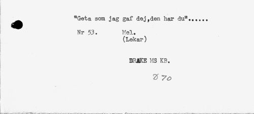 //// ^^ "Geta som jag gaf dej,den har du"...... //// Nr 53. Mel. //// (Lekar) //// * //// BRåKE MS KB. ////