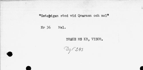 //// .... //// ^Geta^igan stod vid Qvarnen och mol" //// Nr 36 Mel. //// DRAKE MS KB, VISOR. ////