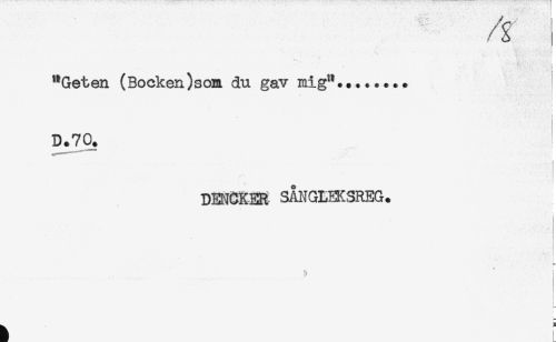 //// /g //// "Geten (Bocken)som du gav mig"... //// < //// D.70. //// DMCKER- 3ÅNGLEKSREG. //// t //// = ////