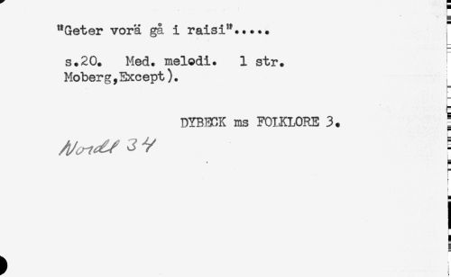 //// "Geter vorä gå i raisi"..... //// s.20. Med. melodi. 1 str. //// MobergyExcept). //// DYBECK ms FOTKLORE 3. g //// i //// r //// < //// i //// B //// j ////
