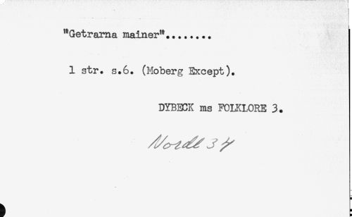 //// " ' //// "Getrarna mainer"... //// 1 str. s.6. (Moberg Except). //// DYBECK ms FOLKLORE 3. ////
