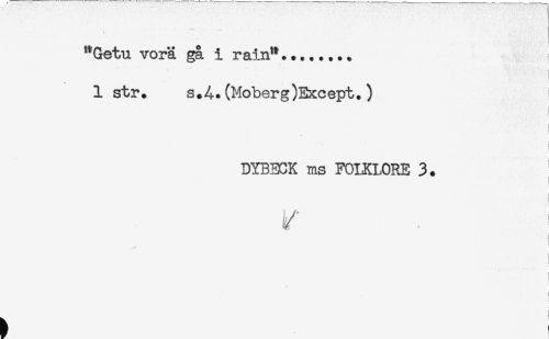 //// "Getu vorä gå i rain**... j //// i //// 1 str. s.A.(Moberg)Except.) //// DYBECK ms FOLKLORE 3. //// i/- ! //// ] //// i //// i //// ^ ////
