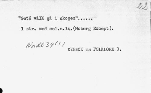 //// "GetS vålä gå i skogen"...... //// 1 str. med mel.s.lA.(Moberg Except). //// ' DYBECK ms FOLKLORE 3. //// ! //// ) ////