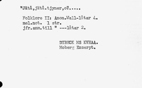 //// " Jätå, jätå.t jyner,o?..... //// Folklore II: Ånon.Wall-låtar A. //// mel.not. 1 str. //// jfr.anm.till " -låtar 2. //// DYBBCK MS KVHAA. //// Moberg Excerpt. ////