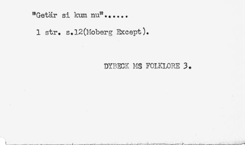 //// "Getär si kum nu"...... //// 1 str. s.l2(Hoberg Except). //// DYBECK HS FOLKLORE 3. ////