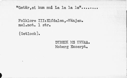 //// "Getär,si kum nu^ La la la la"... //// Folklore III:Elfdalen,-Vänjan. //// mel.not. 1 str. //// (Getlock). //// DYBECK MS KVHAA. //// Moberg Excerpt. //// \ ////