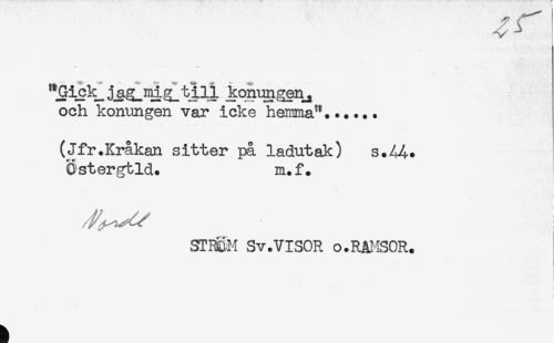 //// J konungen^ //// och kommgen var icke hemma"...... //// (Jfr.Kråkan sitter på ladutak) s.44. //// Ostergtld. m.f. //// ! //// sn€n Sv.VISOR o.RAMSOR. ////