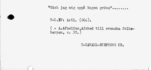 //// "Gick jag mig uppå ängen gröna"... //// ^ H-L.XV: A:61. (264). //// ( = A.Afzelius.Afsked till svenska folke- //// harpan, s. 35.) //// ! H-CåVAIL-STEPHEJS KB. //// < . //// i _ _____ r ////