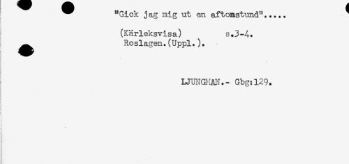 //// ^ "Gick jag mig ut en aftonstund"..... //// (Kärleksvisa) s.3-4. //// ^^ Roslagen. (Uppl.). //// LJU!\TGMM.- Gbg:129. //// i ////