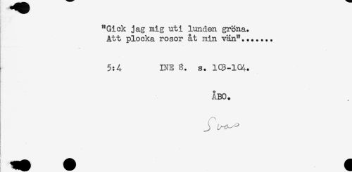 //// "Gick jag mig uti lunden gröna. //// Att plocka rosor åt min vän"....... //// __ //// * //// - //// . //// 5:A INE 8. s. 103-104. //// ÅBO. //// f. //// t //// ) //// L ////