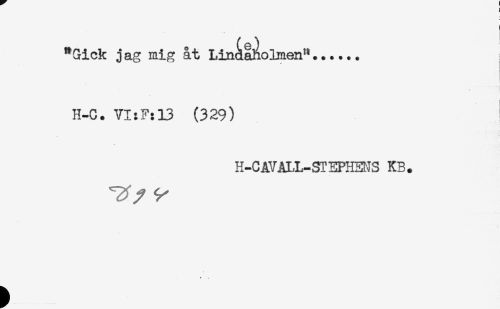 //// "Gick jag mig åt Lin^aliolmen'*...... //// H-C. VI:F:13 (329) //// H-CAVM,L-STEPH3JS KB. ////
