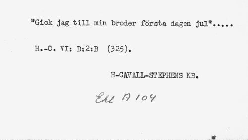 //// "Gick jag till min broder första dagen jul*..... //// H.-C. VI: D:2:B (325). //// H-C AV ALL-ST EPHEMS KB. ////