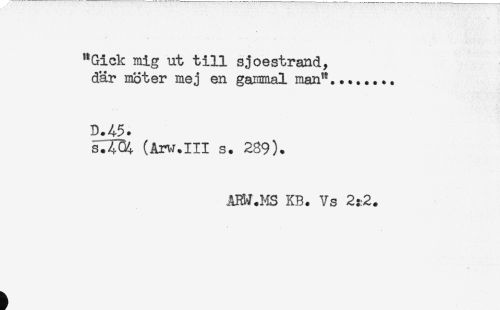 //// "Gick mig ut till sjoestrand, //// där möter mej en gammal man"... //// D.A5. //// (Arw.m s. 289). //// ARW.MS KB. Vs 2:2. ////