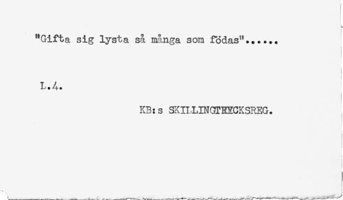 //// ! //// "Gifta sig lysta så många som födas"...... //// : //// t //// ] //// j //// L.A. //// KB:s SKILLINGTRYCKSREG. //// - //// ) //// < //// t //// t //// ! //// t //// i //// f //// t //// j ////