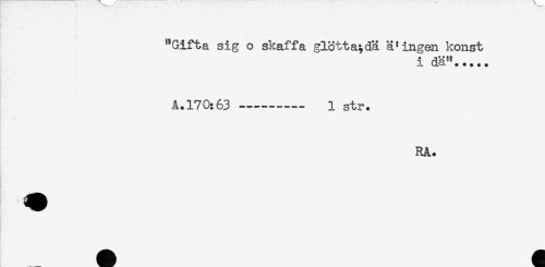 //// "Gifta sig o skaffa glötta;dä ä'ingen konst //// iL da" * * + * + //// A.170:63 --- 1 str. //// RA. ////