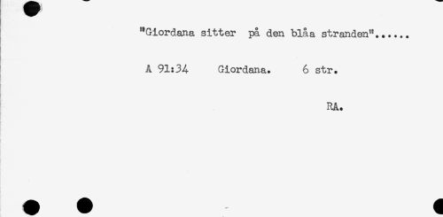 //// "Giordana sitter på den blåa stranden"....,. //// Å 91:34 Giordana. 6 str. //// RA. //// I ////
