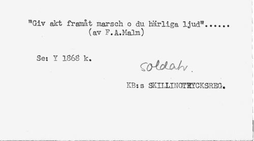 //// "Giv akt framåt marsch o du härliga ljud"...... //// (av F.å.Malm) //// Se: Y 1868 k. . ; ' //// KB: s SKILUNGTEYCKSREG. ' //// i //// < //// t- ////