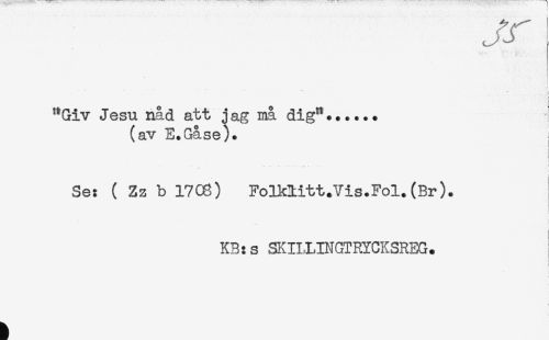 //// jr //// i //// i //// "Giv Jesu nåd att jag må dig"...... //// (av E.Gåse). //// .. - . ? //// Se: ( Zz b 17C8) Folklitt.Vis.Fol.(Br). //// K3:s SKIILINGTRYCKSREG. //// < ////